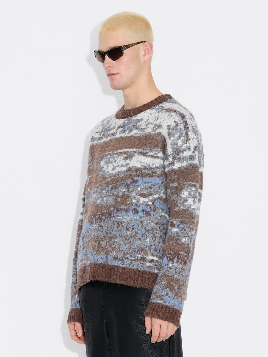 Made from a wool-blend knit, the Arvy Landscape sweater is defined by its all-over jacquard depicting a snowy mountaintop. This oversized design has a crew neck and ribbed edges.