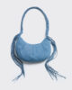 The Cocoon Big Denim bag is a slouchy design with creased detailing. It hangs from a braided shoulder strap that’s finished with tassel trims. A top zip fastening keeps essentials secure.