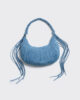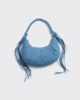 The Cocoon Small Denim bag is a slouchy design with creased detailing. It hangs from a braided shoulder strap that’s finished with tassel trims. A top zip fastening keeps essentials secure.