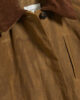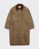 The Diana coat is a knee-length silhouette with an oilskin finish. It’s characterised by a removable corduroy collar, and it has a concealed button placket, side slit pockets and a slit at the hem to ensure ease of movement.
