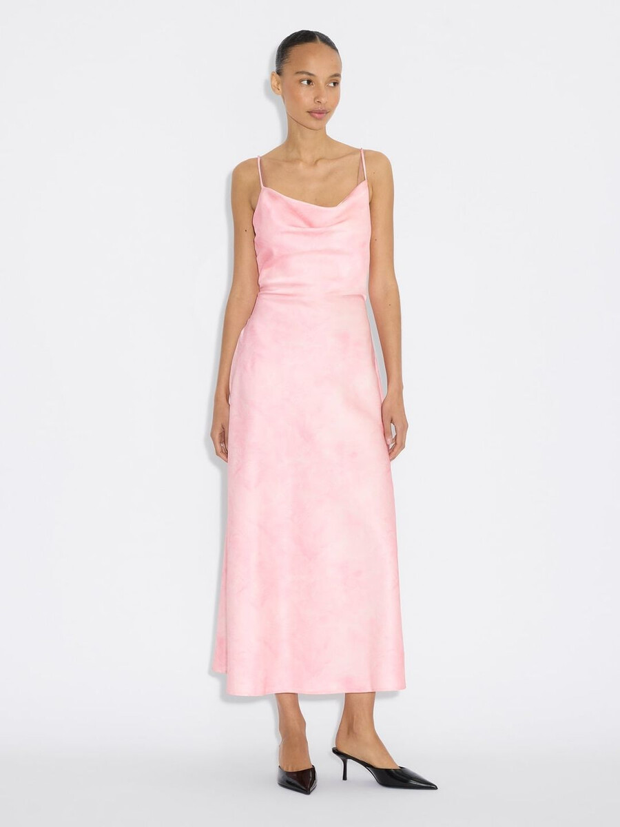 For the new season, the Eila Midi Dress is reimagined with digitally-printed, artistic patterns which play with textural fur in refreshing colourways. This do-it-all slip dress is defined by a slinky texture, waterfall draping and easily adjustable spaghetti straps. The slim silhouette, gently fitted waist and bias cut makes Eila a flattering option.