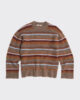 The Fluffy Stripe sweater is made from a tactile alpaca-blend knit with horizontal stripes. A classic silhouette, it has raglan sleeves, a crew neck, insulating ribbed edges and a relaxed fit.