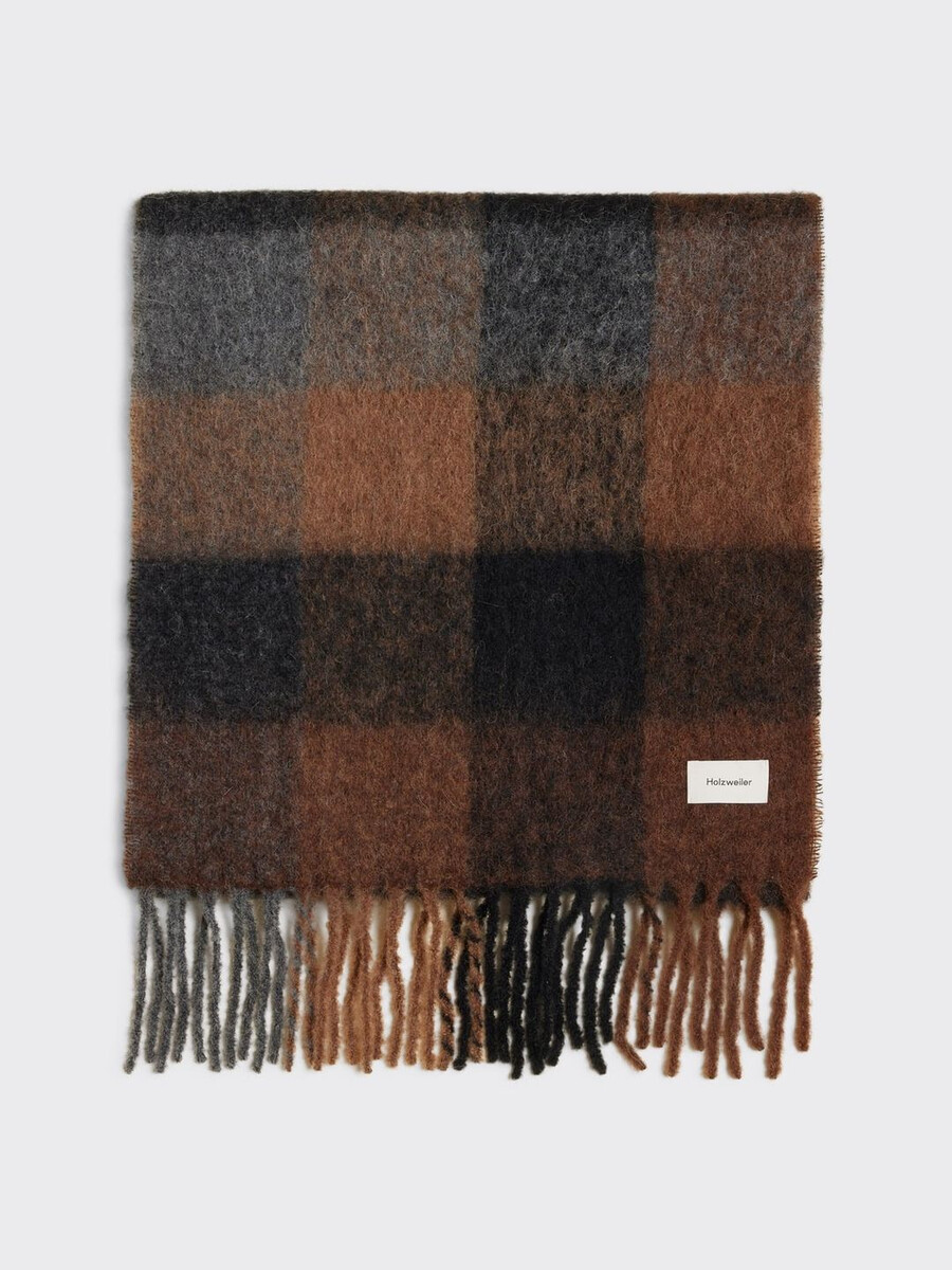 We first started making our scarves in Florence a decade ago when we fell in love with a small factory and the traditional techniques used. This remains where our scarves are produced to this day. Our Fresia scarf is made from a tactile bouclé alpaca-blend. It’s finished with a checked print and fringed edges.
