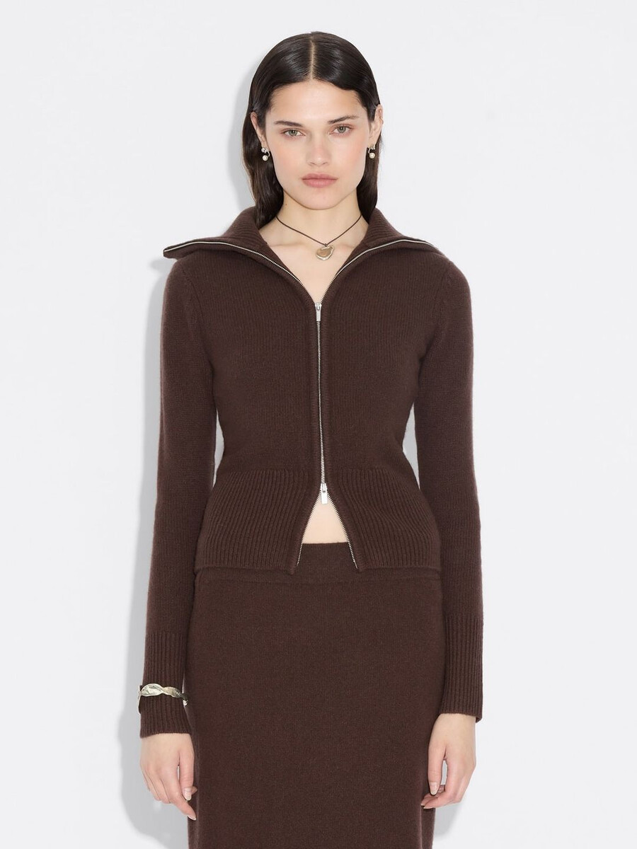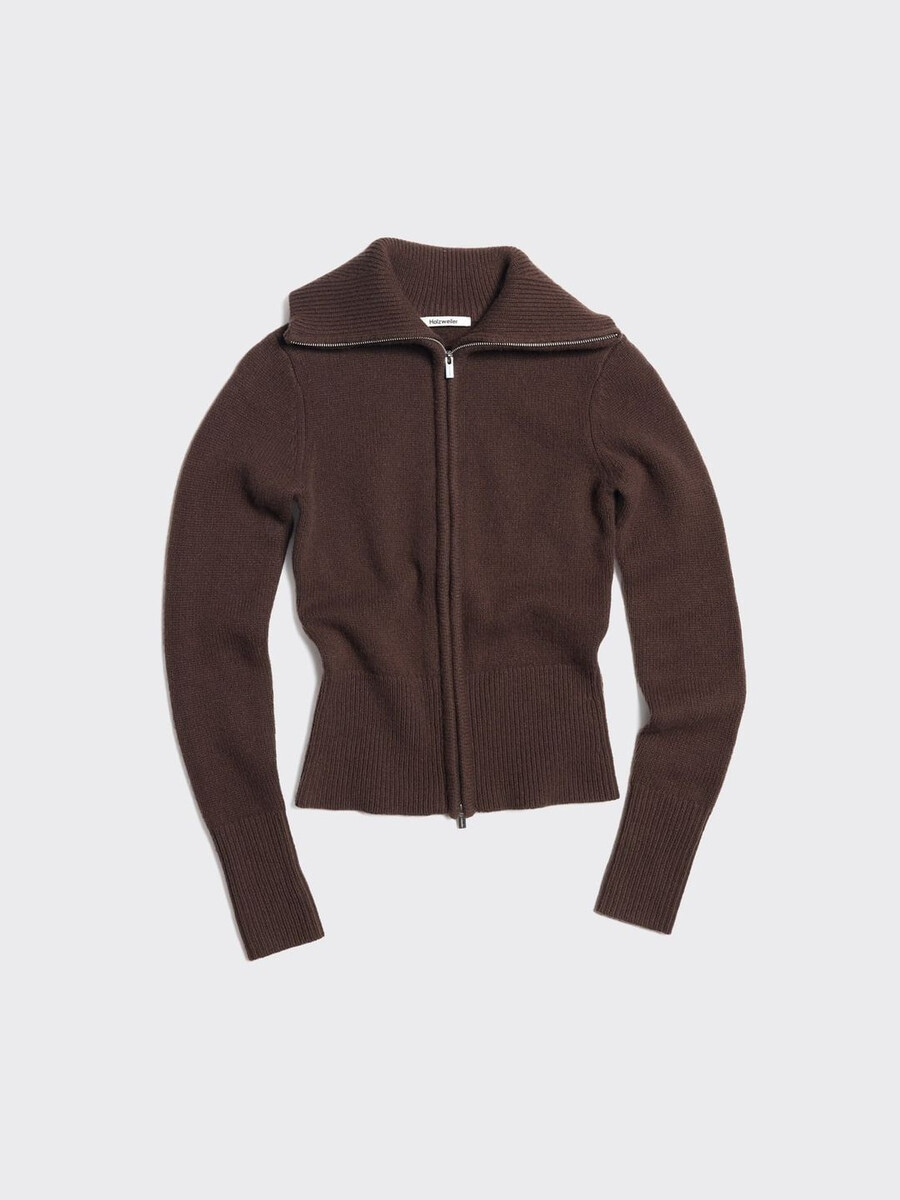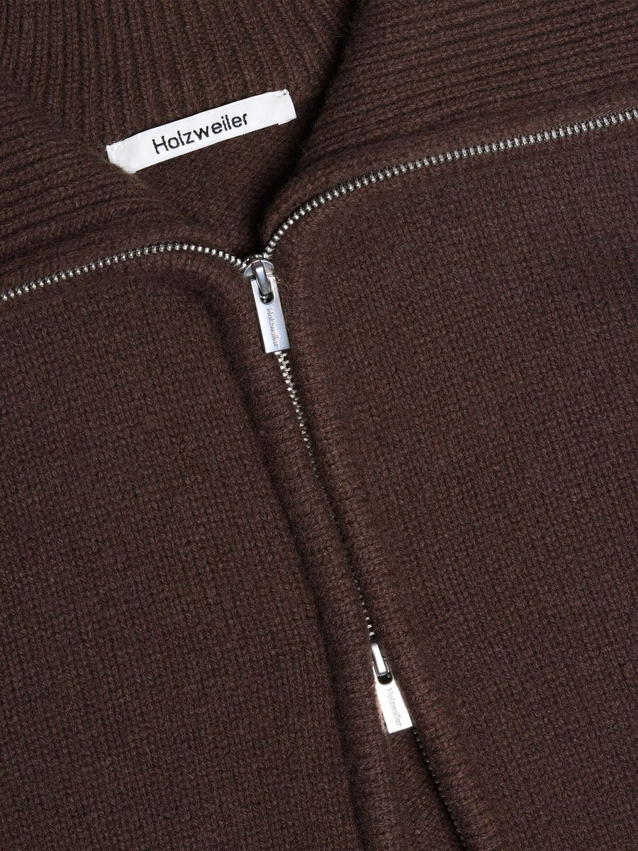 Made from a lightweight wool knit, the Line Wool cardigan has a wide collar and a two-way zipped front.