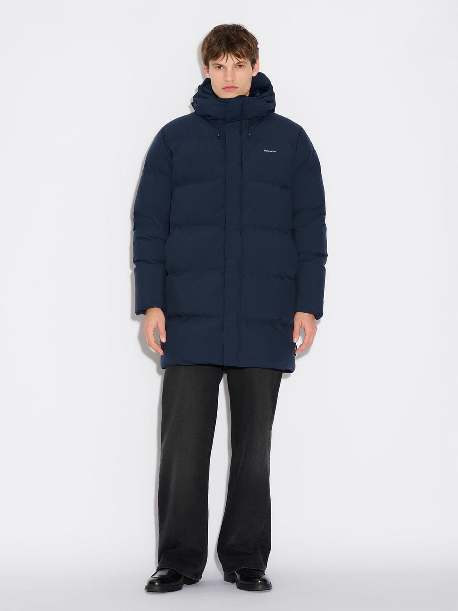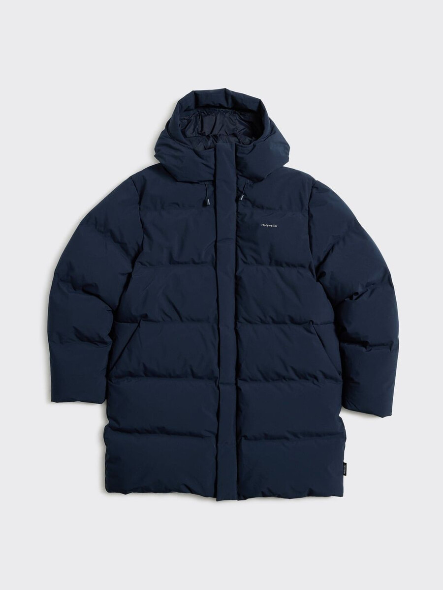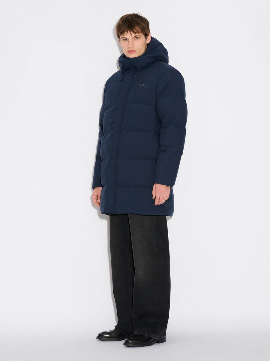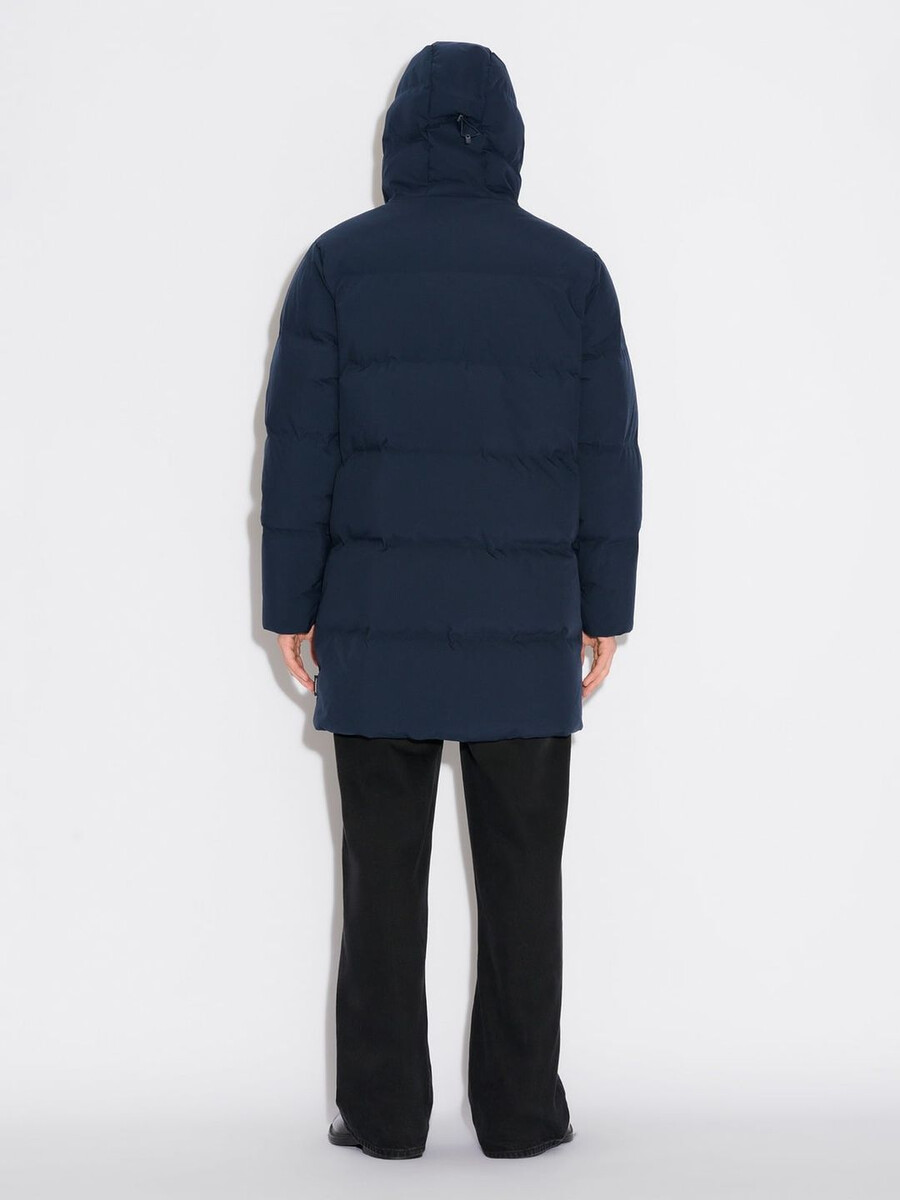 Padded with RDS-certified down and made from a responsibly sourced technical fabric with 10K/10K Waterproof DWR finishing, the Lom Down jacket will prove indispensible to your outerwear rotation in the colder months. A knee-length design with a straight-down silhouette, it has a hood, funnel neck and a front zip fastening with a protective placket