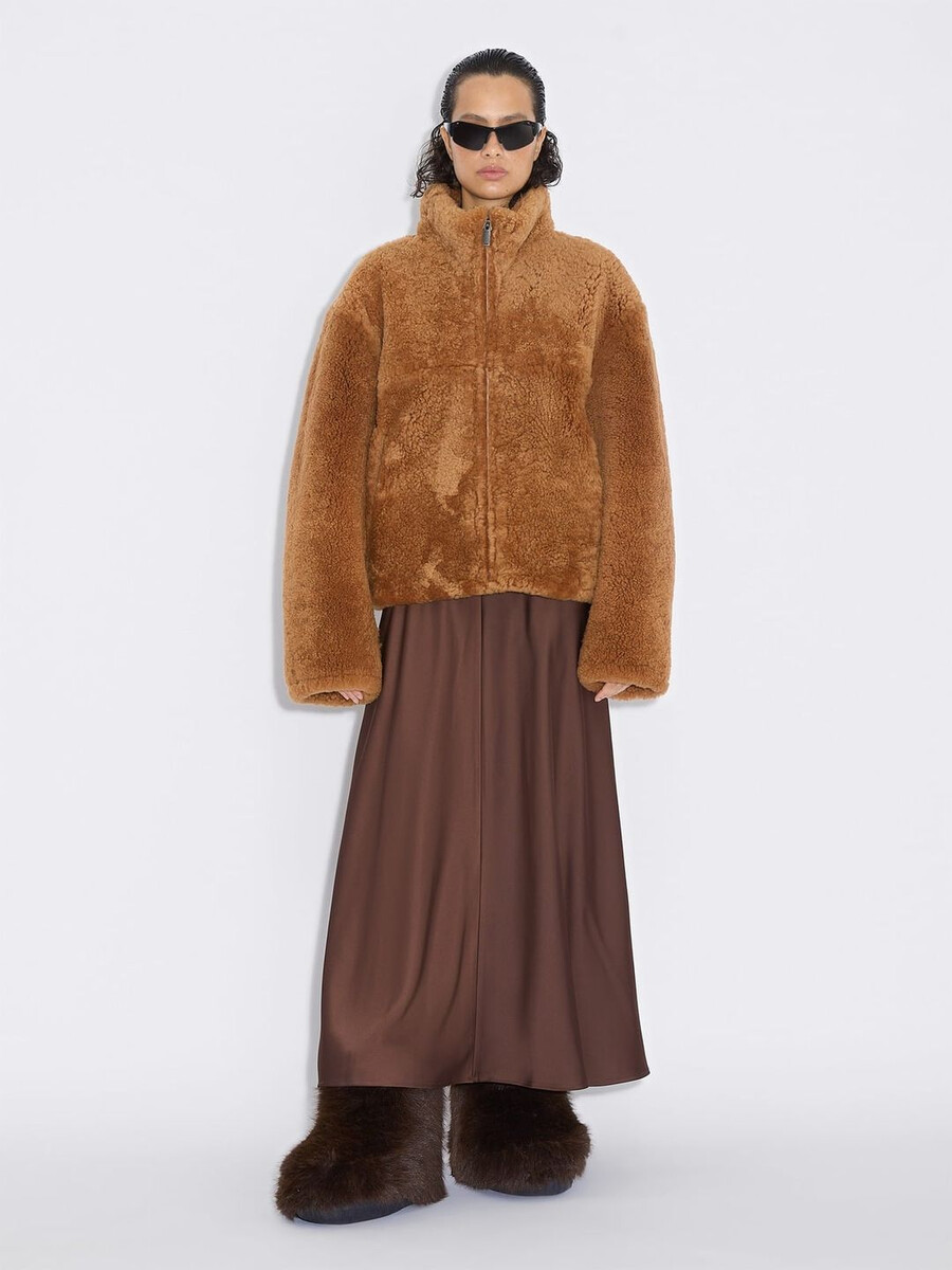 The Louma Shearling Jacket is made from butter-soft lamb leather with a tactile shearling-lined interior, crafted into a slightly boxy, cropped silhouette. The design features a wide collar, zipped front and front pockets. Two jackets in one, this piece is reversible, meaning you can decide how to wear it depending on your mood and the forecast.