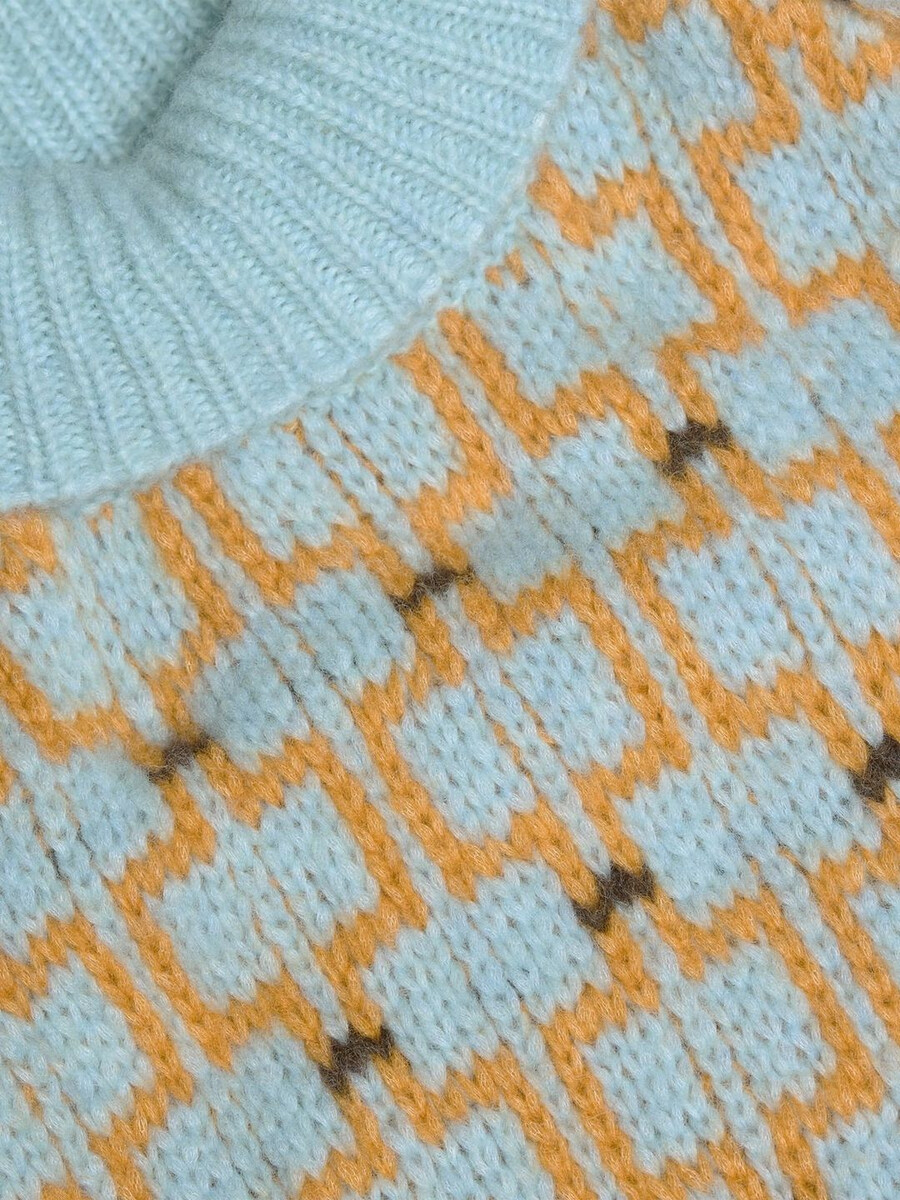The Norwegian Wool turtleneck has been designed in collaboration with Skappel. Made from soft Norwegian lambswool with an all-over intarsia pattern, it’s a boxy silhouette with a relaxed fit.