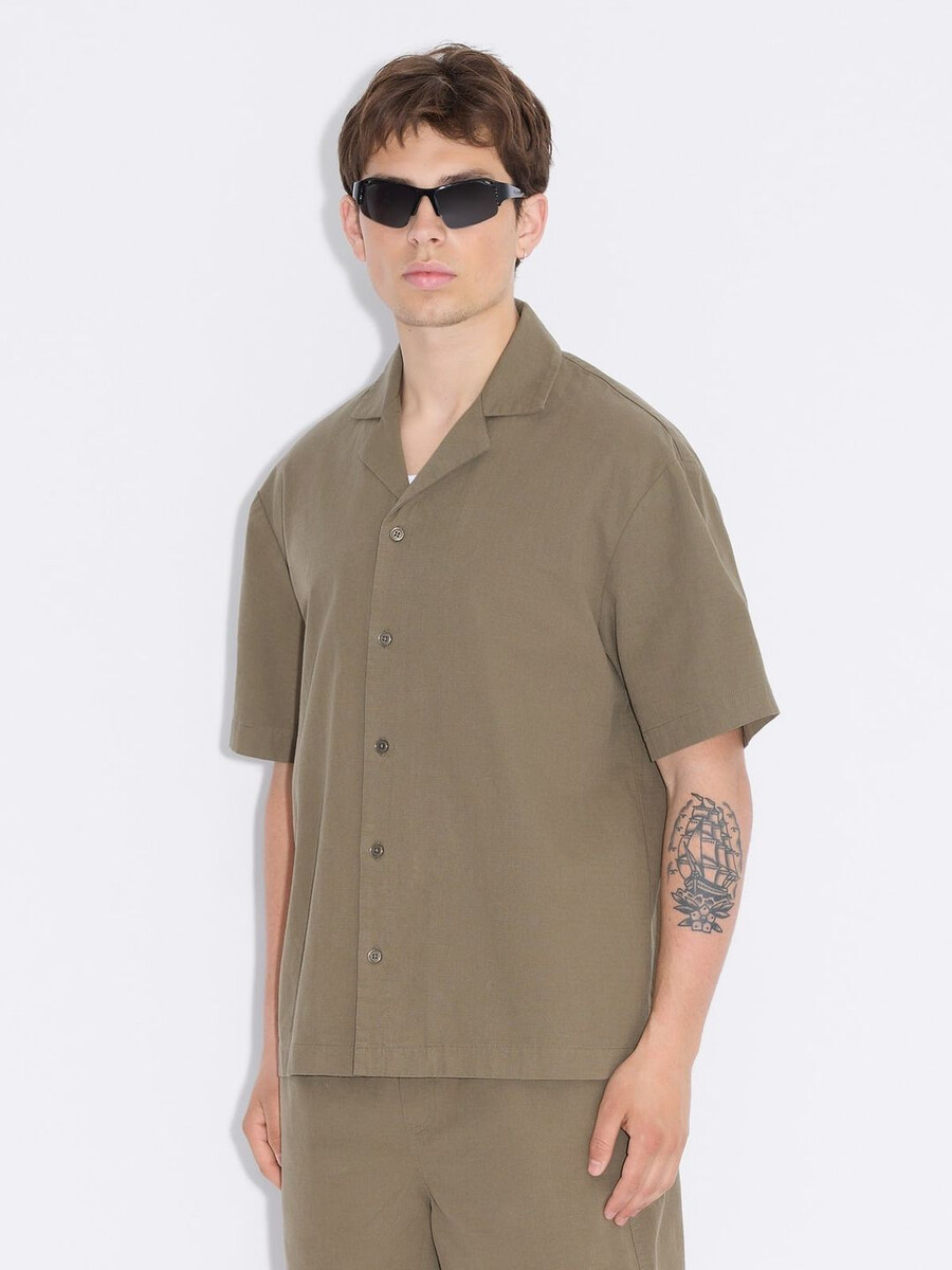 The Pier Ripstop shirt is made from heavyweight, durable ripstop and has a relaxed fit to ensure breathability. It features a Cuban collar and a buttoned front.