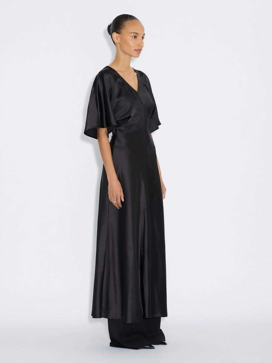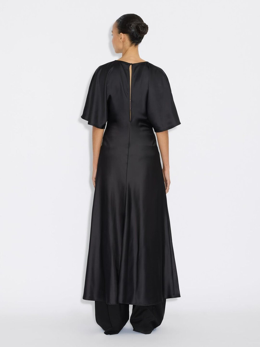 Our Rakel Midi Dress is suited to a variety of occasions, moving seamlessly throughout the whole day in understated yet luxurious style. Crafted from lustrous satin fabric in a classic hue that’s equal parts versatile and elegant. A sculptured silhouette is defined by airy sleeves, V-shaped neckline and fitted waist, falling to a mid-length hem.
