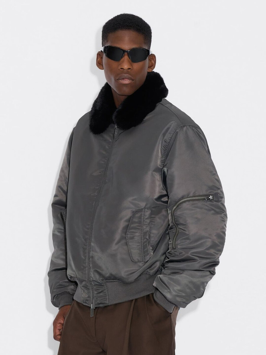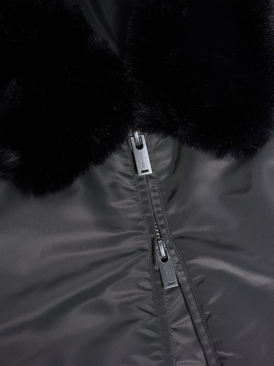 The Reb Aviator jacket is made from a shiny technical fabric that’s offset by a faux fur detachable collar. It has a two-way zipped front, front pockets, a sleeve pocket and ribbed edges.