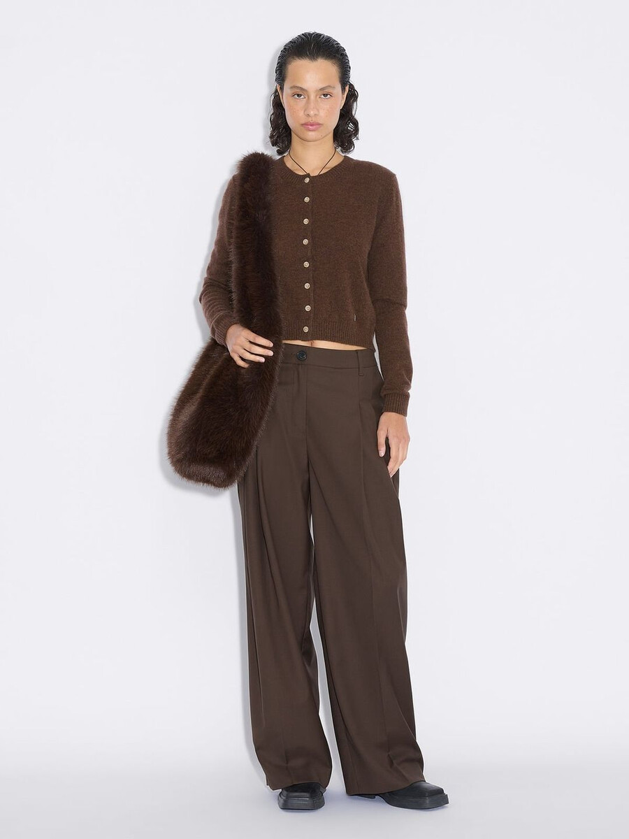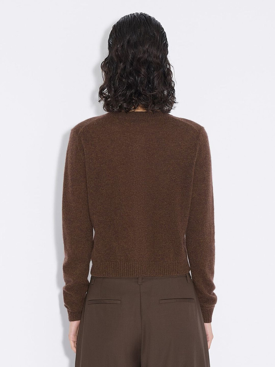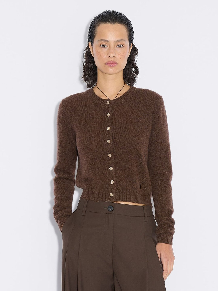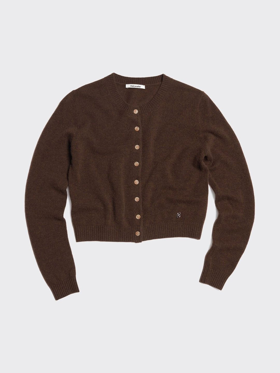 Made from a fine knit, the Cashmere cardigan has a round neck, buttoned front and ribbed edges. It’s detailed with a removable metal logo emblem plaque above the waist.