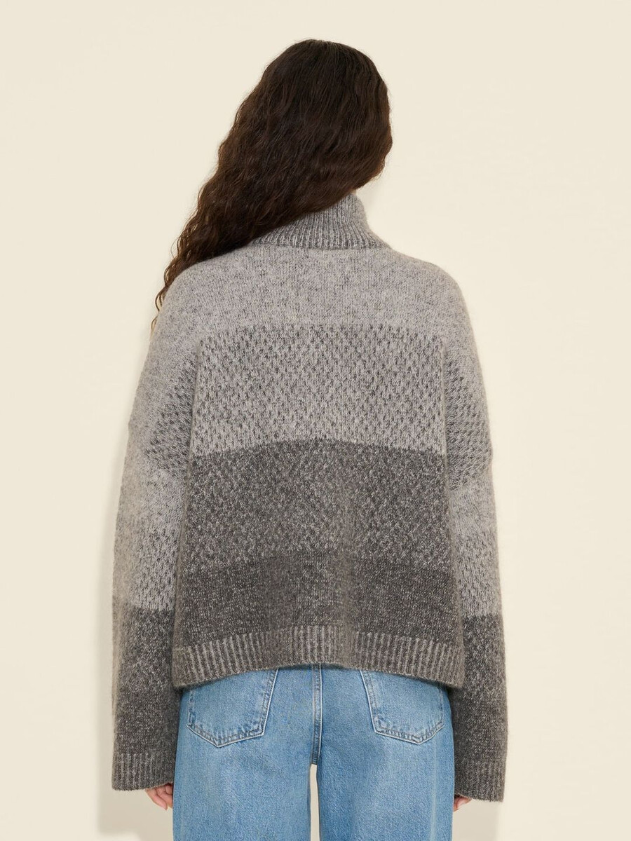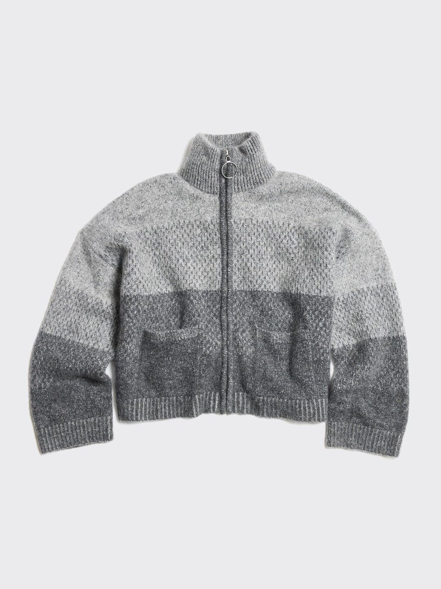 One of our most beloved styles, the Tine cardigan is made from a chunky, insulating knit. Featuring a zipped front, high neck and welt pockets, this design is defined by its jacquard patterning with a gradient effect.