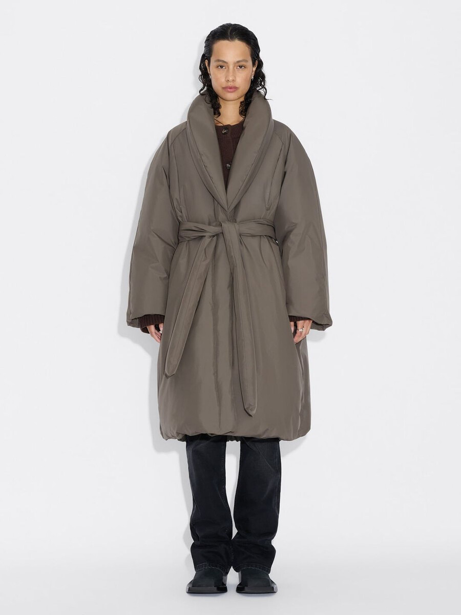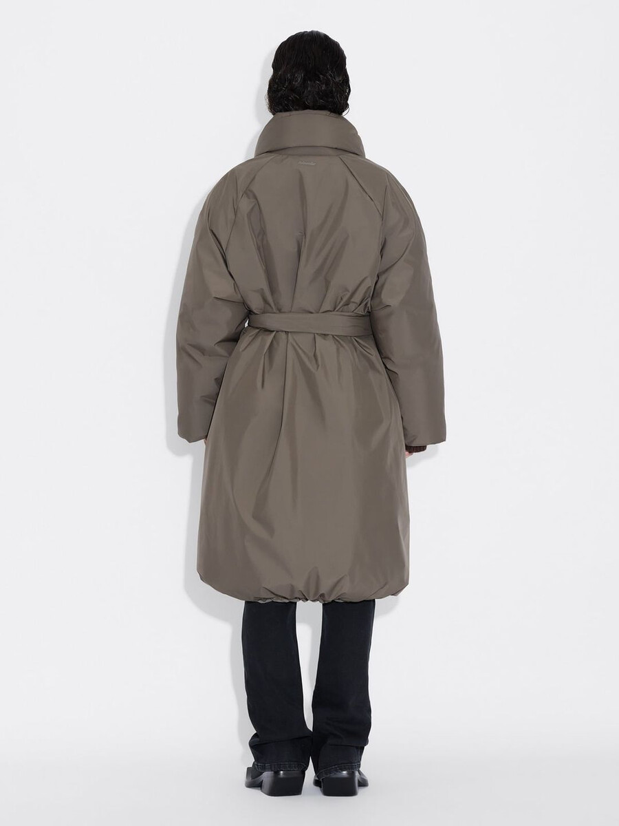The Vikki Long down coat has a below-the-knee-length hem that makes it suited to both daytime and evenings. Padded with RDS-certified down, it’s made from a water repellent fabric and has a shawl collar, raglan sleeves, multiple pockets, a self-tie removable belt and a subtle logo print on the back of the neck.