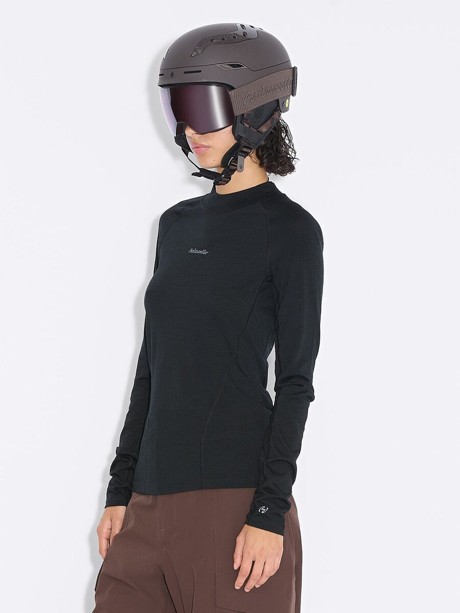 Part of our active collection, the Tryvann top is a balance of form and function you can rely on while on the slopes. Made from a wool-blend, it has a mock neck, a slim fit that can be layered easily under outerwear and logo detailing. Style with the matching Tryvann tights.