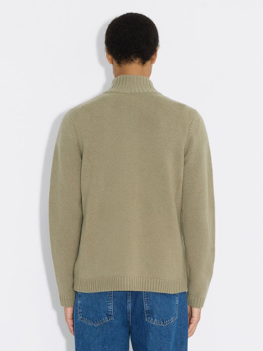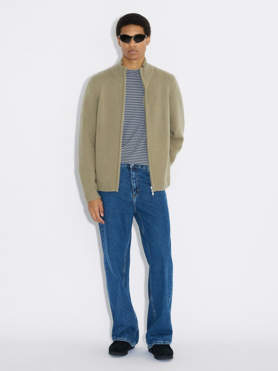 Inspired by nature, made for everywhere, the Zip-Up Wool Cardigan has a unique earthy sage tone. This relaxed-fit cardigan has a zipped front, offering two pieces in one – either an easy layer to throw over everyday looks or the focal point of an outfit. Crafted from pure wool, promising optimum softness and all-over warmth via a high neckline.